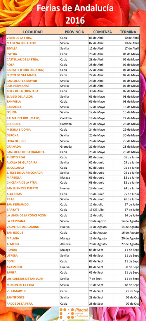 Todos los años igual se les olvida de poner la feria de San Roque de Cádiz en agosto ,no entiendo por que se olvidan de este pueblo. Vaya tela!!!!